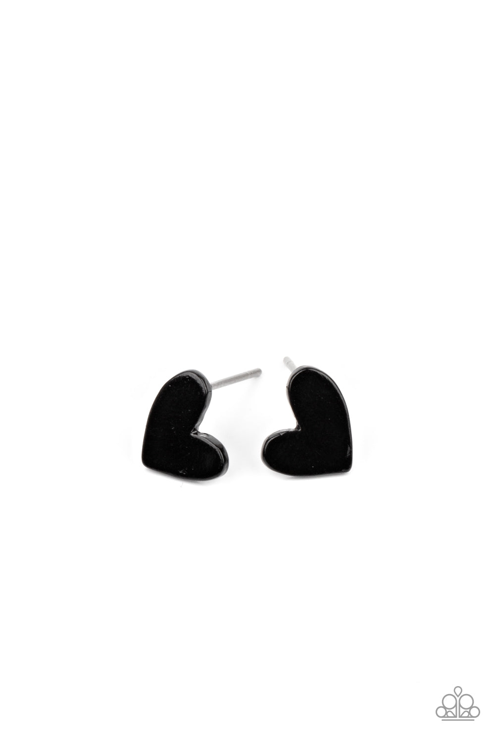 Bundle of 10 earrings. The colorful heart frames vary in shades of purple, red, hot & light pink, green, black, yellow, cobalt blue & blue and white. Earrings attach to standard post fittings.