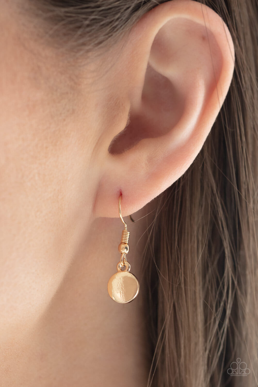 Brushed in a high sheen finish, gold discs gradually increase in size at the center as they delicately collect at the bottom of a bowing gold bar. The dainty pendant swings below the collar for a whimsical finish. Features an adjustable clasp closure.
