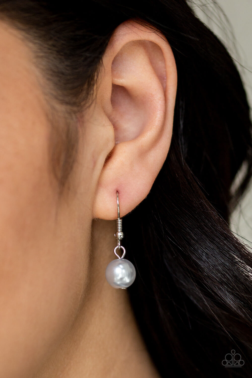Two strands of classic gray pearls are strung along invisible wires below the collar. Each strand slightly varies in size, adding a modern twist to the timeless pearl palette. Features an adjustable clasp closure.