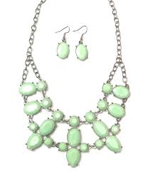 A collision of round, oval, and teardrop green beaded frames delicately connect below the collar for a glamorous look. Features an adjustable clasp closure.