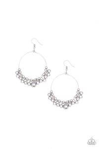 A fringe of white pearls dances along the bottom of a skinny silver wire hoop, creating a carefree take on a timeless classic. Earring attaches to a standard fishhook fitting.