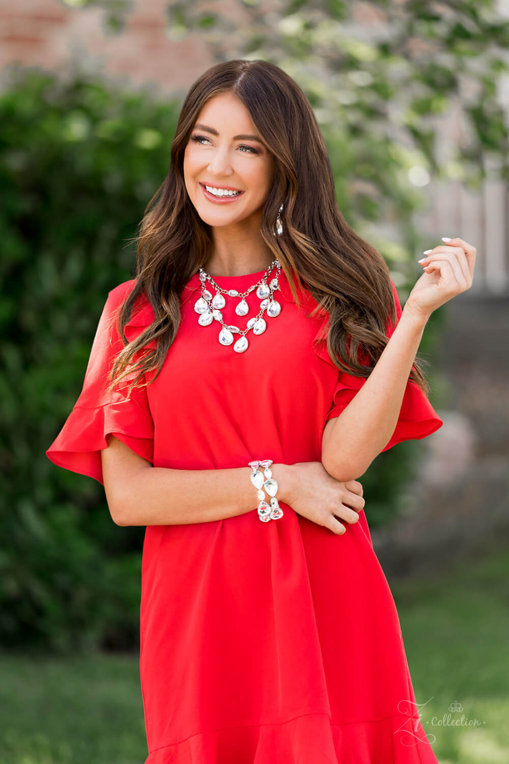 Tiers of oversized white teardrop gems demand attention as they drip from two blinding rows of elegantly linked white oval rhinestones. Infused with sections of chunky silver chain links, the sparkling rows brilliantly layer below the collar, becoming the center of every conversation. Features an adjustable clasp closure.